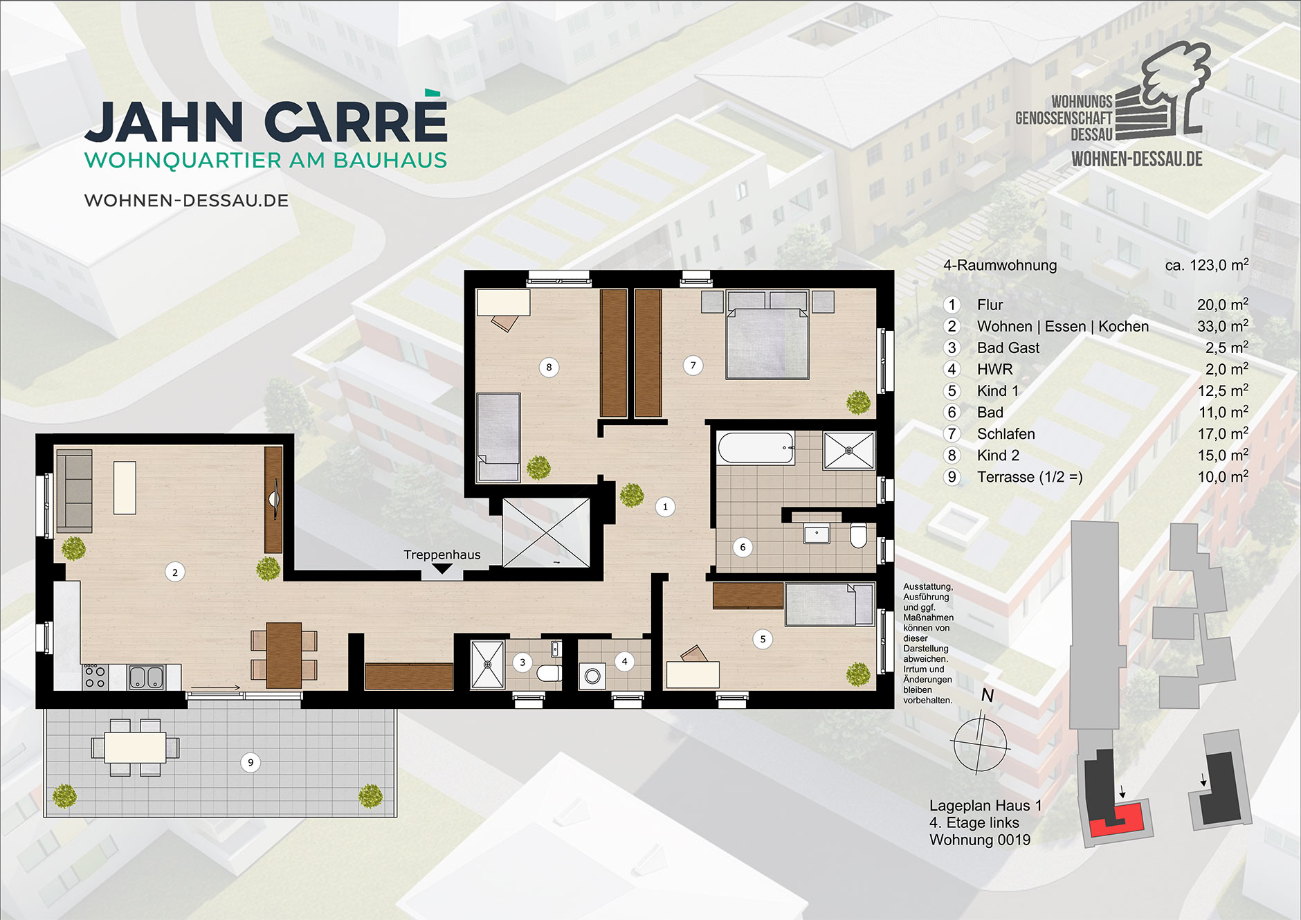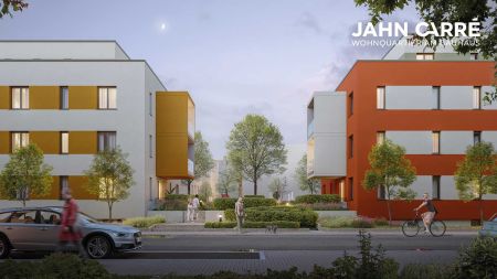 In drei Bauabschnitten werden drei neue Wohnhäuser und ein Parkdeck errichtet. Unsere Jahnstraße 9 wird grundlegend modernisiert. So entstehen insgesamt 90 Mietwohnungen zwischen ca. 58 m² und 124 m² sowie 90 Stellplätze. Baubeginn ist das 4. Quartal 2023.