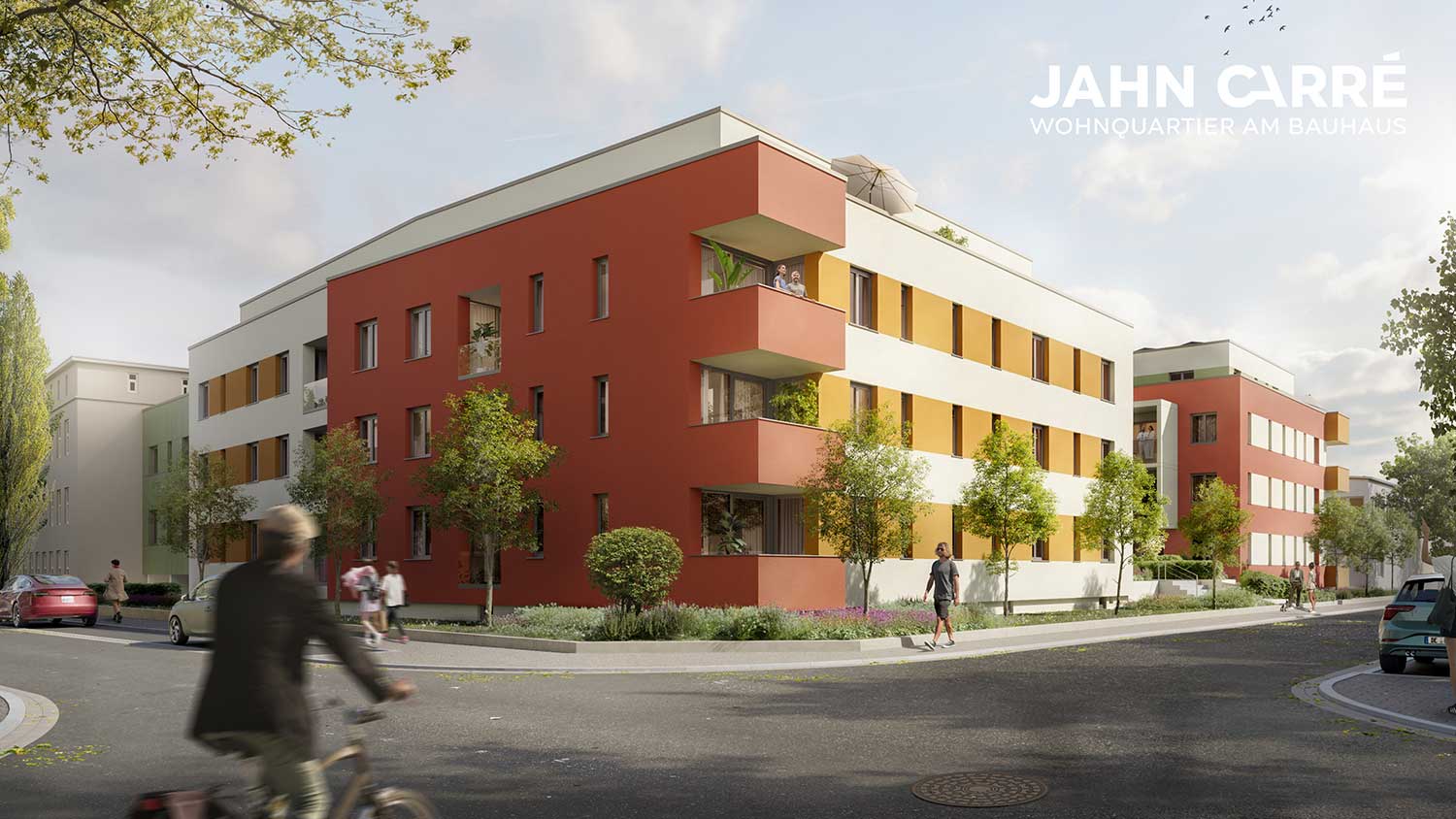 Unser aktuelles Neubauprojekt befindet sich in der Jahnstraße/ Liebknechtstraße/ Luxemburgstraße des Stadtteils Ziebigk-Siedlung und liegt in unmittelbarer Nähe zum Bauhaus und zum Schloss und Park Georgium (Teil des Dessau-Wörlitzer Gartenreiches).