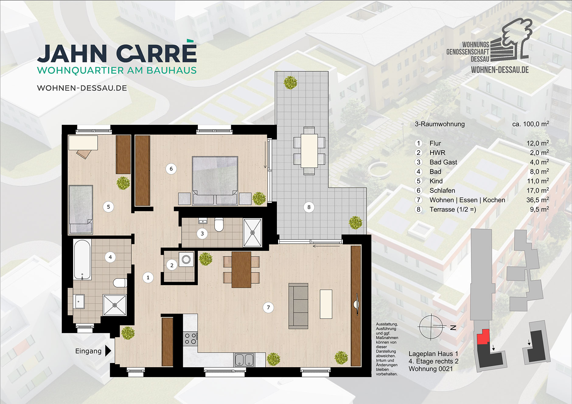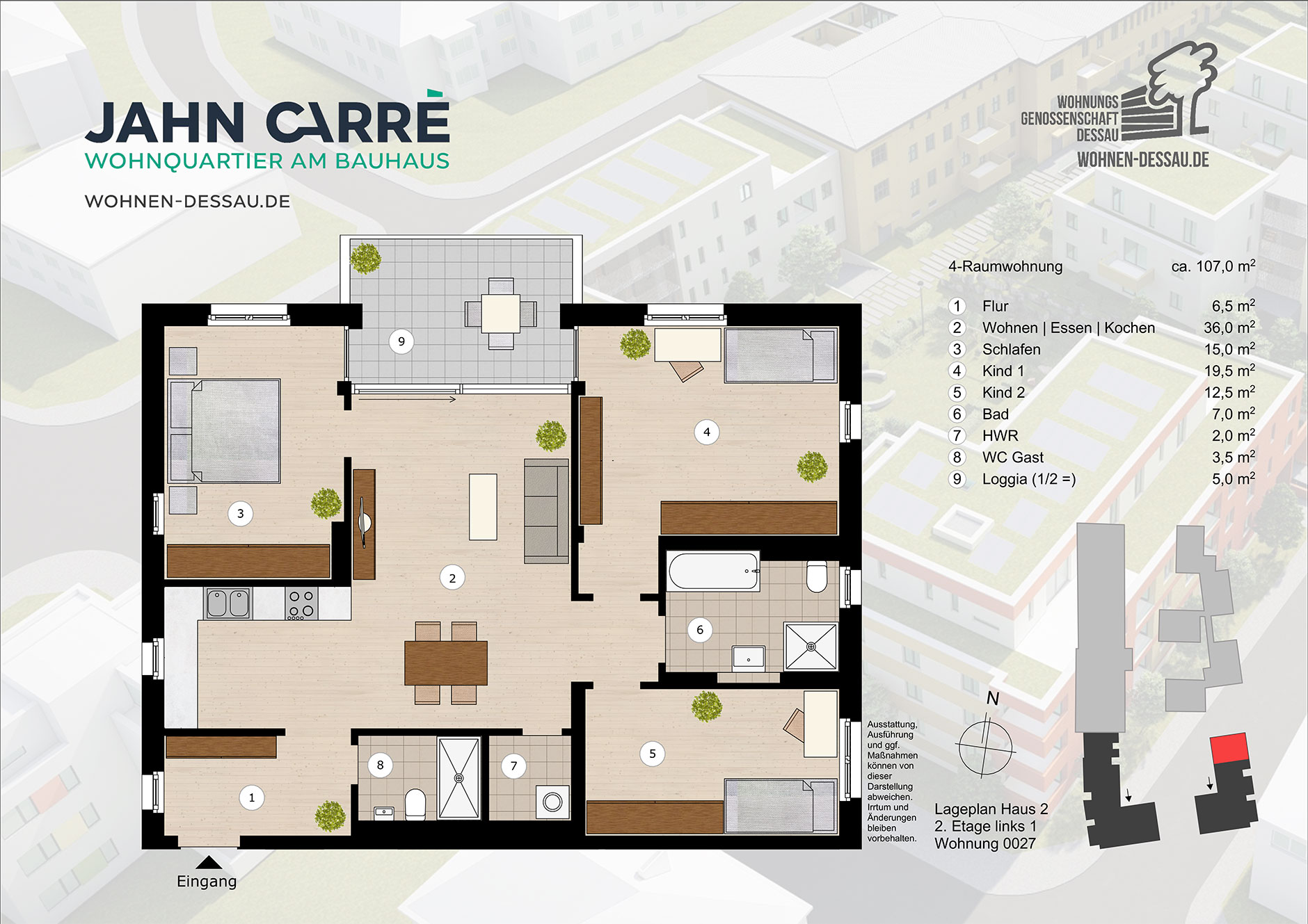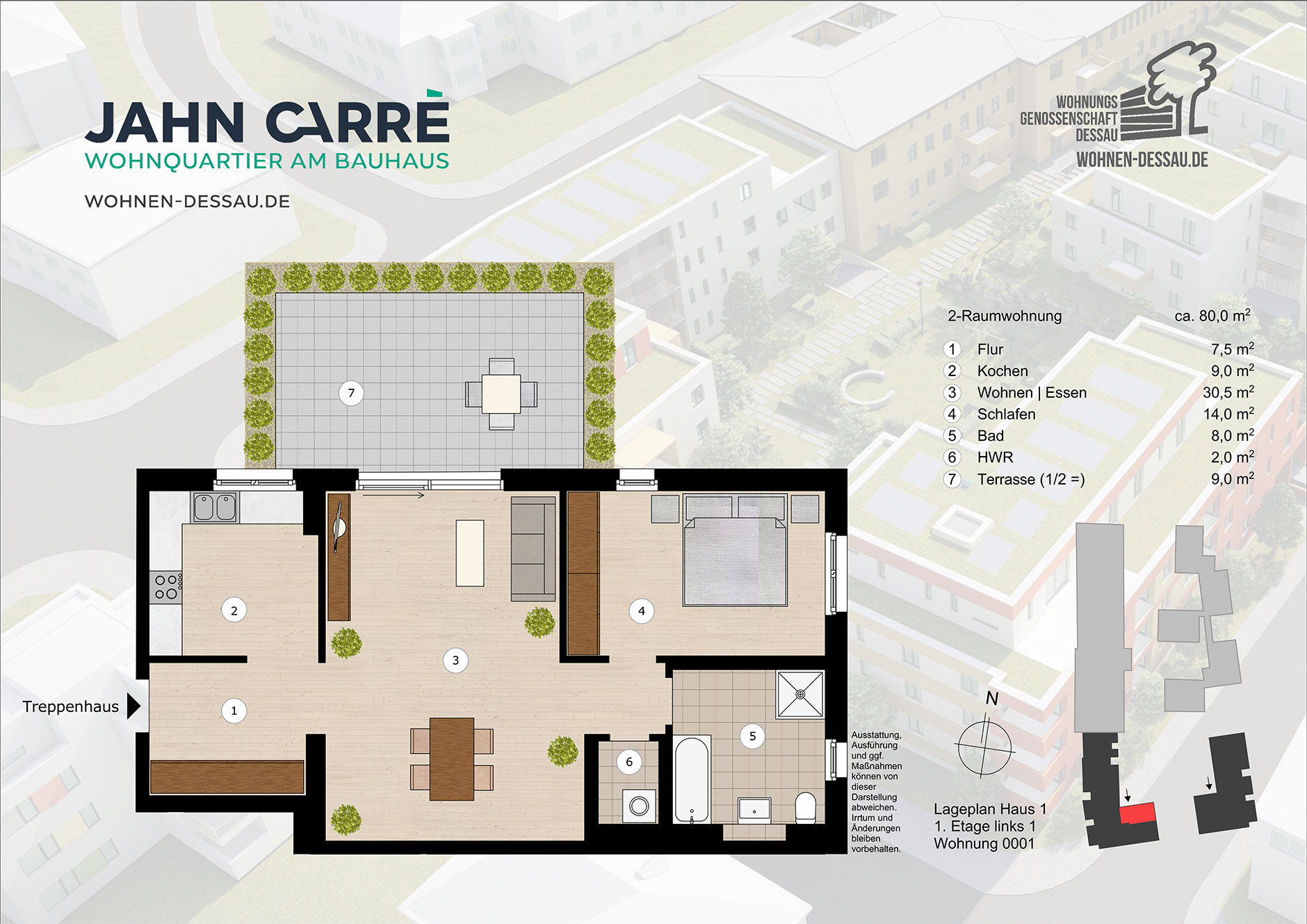 • alle Wohnungen und Stadthäuser verfügen über Balkone bzw. Terrassen